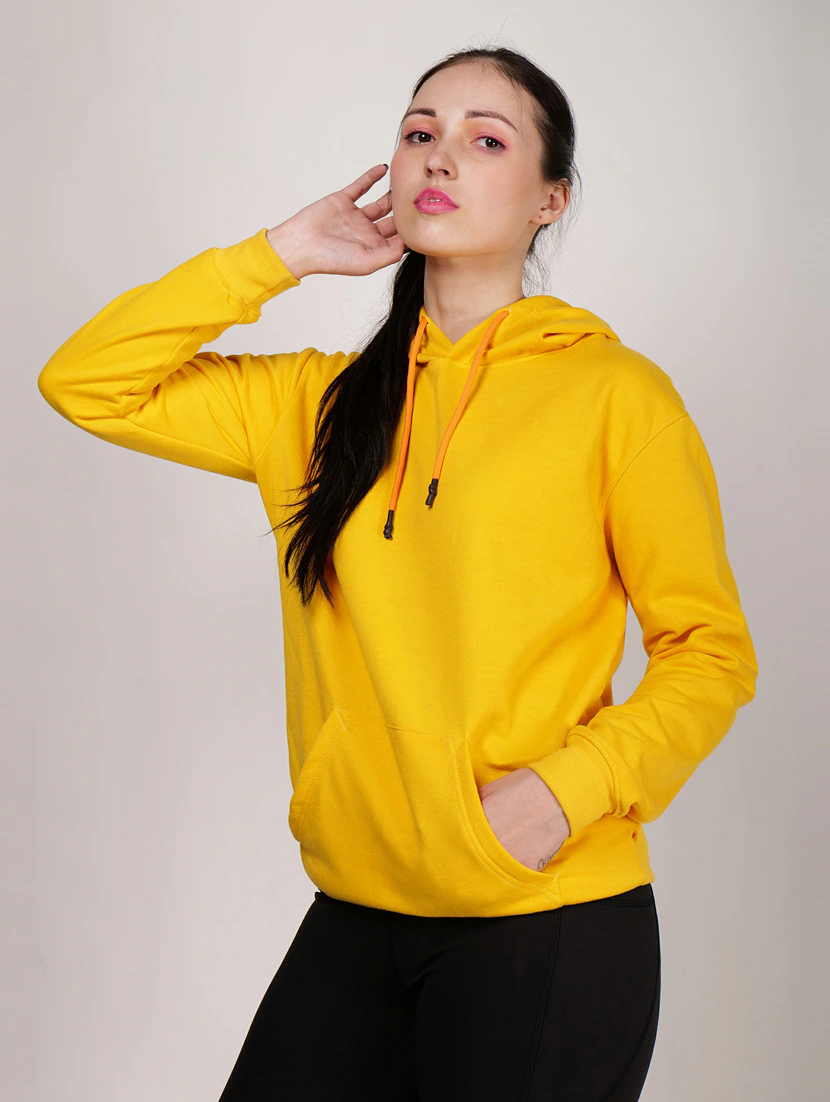 Brighten up your wardrobe with our Women’s Yellow Hoodie. Crafted from luxuriously soft fabric, this hoodie offers a perfect blend of comfort and style. The cheerful yellow hue instantly elevates your mood, making it a perfect choice for casual days or as a layering piece. With its classic hooded design and cozy fit, this hoodie is sure to become a wardrobe staple.